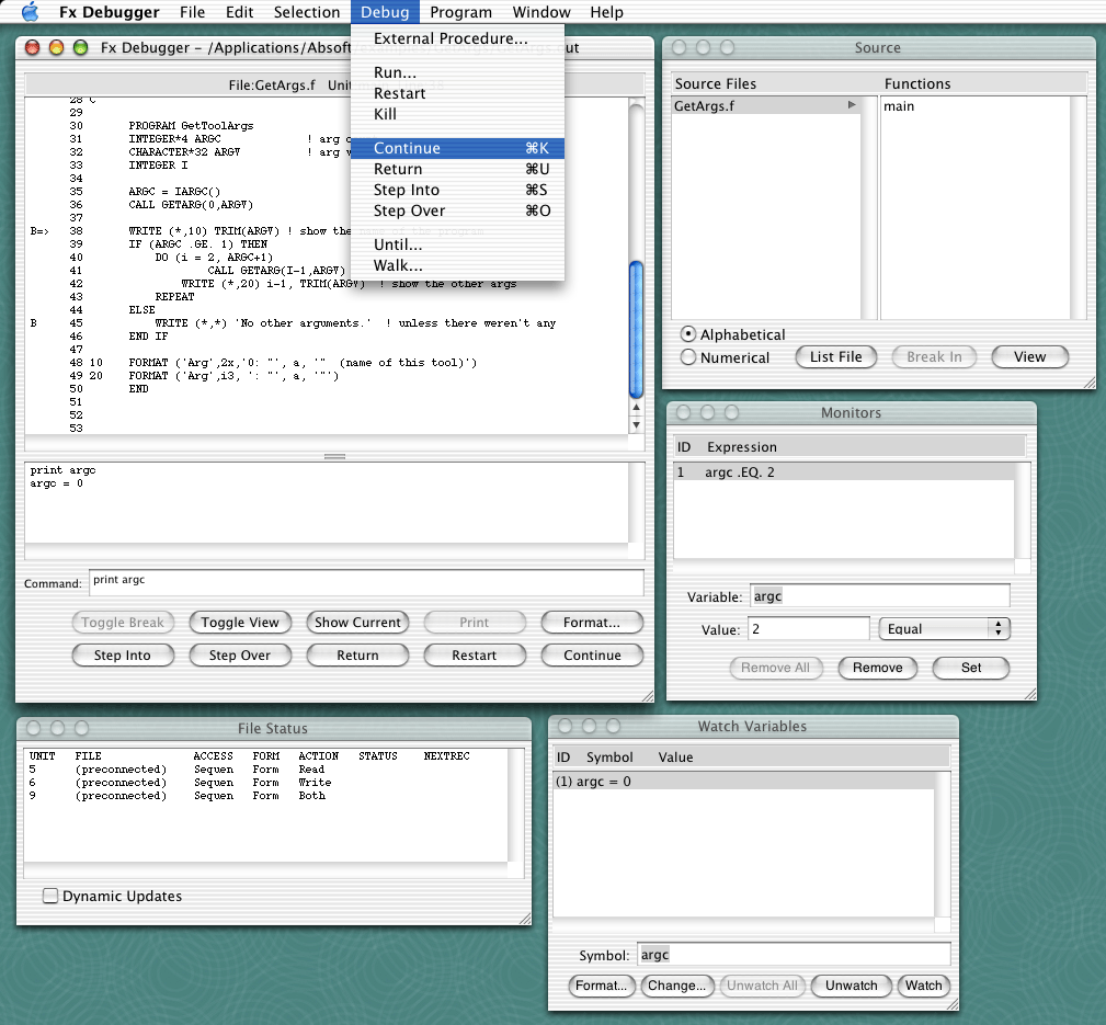 auf Windows portiert werden Ausstattung Neben dem Fortran Compiler ist noch einen C/C++ Compiler enthalten. Die Compiler sind untereinander objekt-kompatibel. Sie können sowohl aus der Entwicklungsumgebung mit integriertem Editor (AE), Debugger (Fx3), Linker etc., als auch von der Kommandozeile aufgerufen werden.